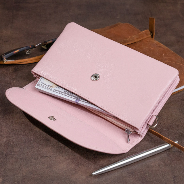 Стильный клатч по всем современным тенденциям нежного розового цвета. Аксессуар обладает необычайно красивой природной фактурой кожи. Нежно-розовый цвет добавит вашему образу легкости и оригинальности. Клатч имеет легко выраженный запах кожи. Фурнитура надежная. Внутри достаточно места для удобного расположения бумажных купюр, банковских, дисконтных карт, визиток, документов, мобильного телефона и личных вещей ведь отделения просторные и выполненные с текстиля. С таким клатчем будет удобно пойти на вечеринку. Аксессуар с легкостью заменит вам вечернюю сумочку. Клатч упакован в фирменную коробку от производителя. В нашем интернет-магазине вы найдете качественные аксессуары по доступным ценам.
