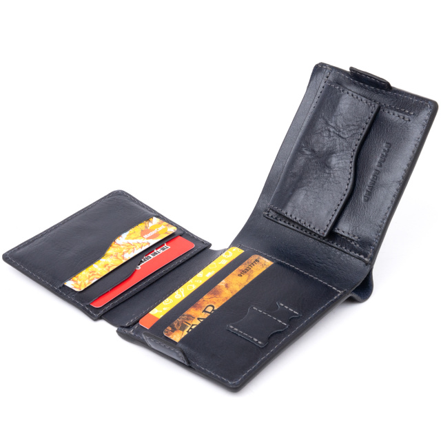 Вместительное и функциональное портмоне из натуральной кожи блестящей. Аксессуар подойдет для любителей функциональных аксессуаров приближенных к классическому. Оригинальный и модный синий цвет смотрится очень ярко. Портмоне поместится в маленькую сумку или карман брюк. Дополнит и завершит ваш образ.