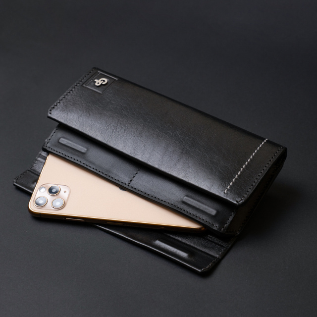 - 2 автономные части под клапанами с магнитами: первая для купюр и кредиток, вторая - для мобильного телефона;