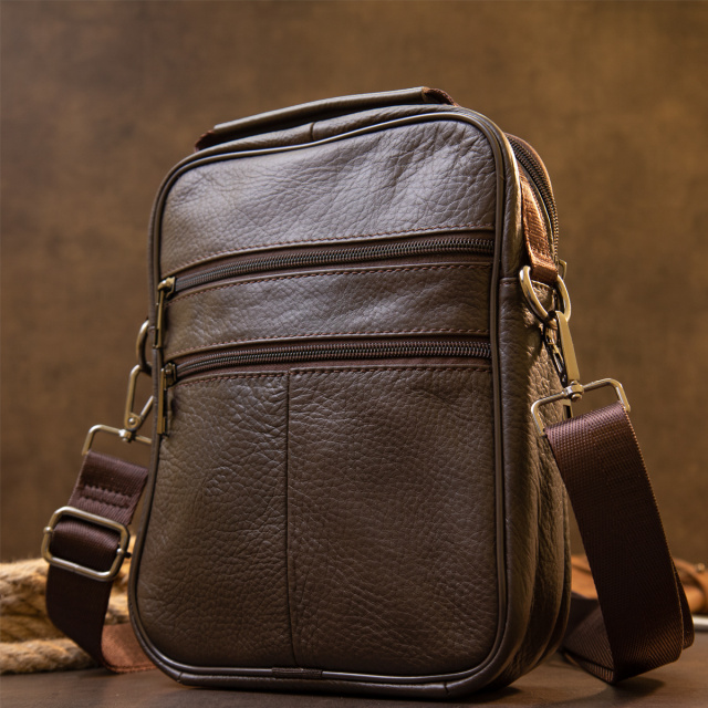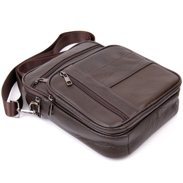 Мессенджер для мужчин из натуральной кожи небольшого размера. Аксессуар вы можете носить как в руках, так и на плече. Дизайн аксессуара выдержан в классическом стиле и разбавлен ярким коричневым цветом с красноватым оттенком. Внутри сумки качественная текстильная подкладка. Дополнен мессенджер качественной фурнитурой. Сумка идеально подойдет для работы или учебы, а также для деловых встреч или встреч с друзьями. Мессенджер - идеальный вариант сумки для современного мужчины. Изделие имеет весь необходимый функционал.