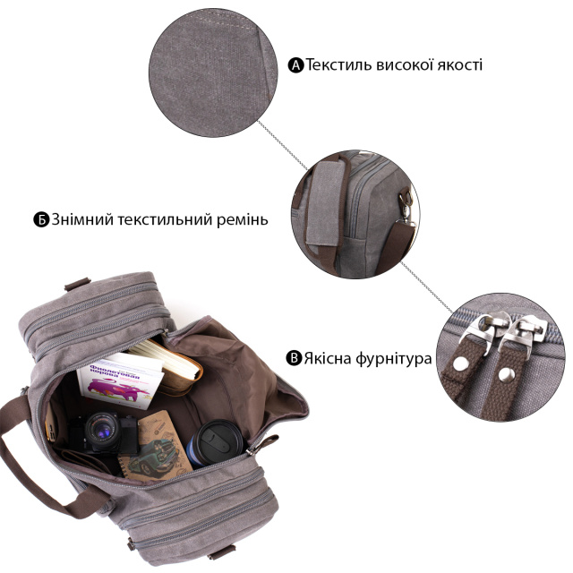 Дорожная сумка текстильная Vintage 20665 Серая
