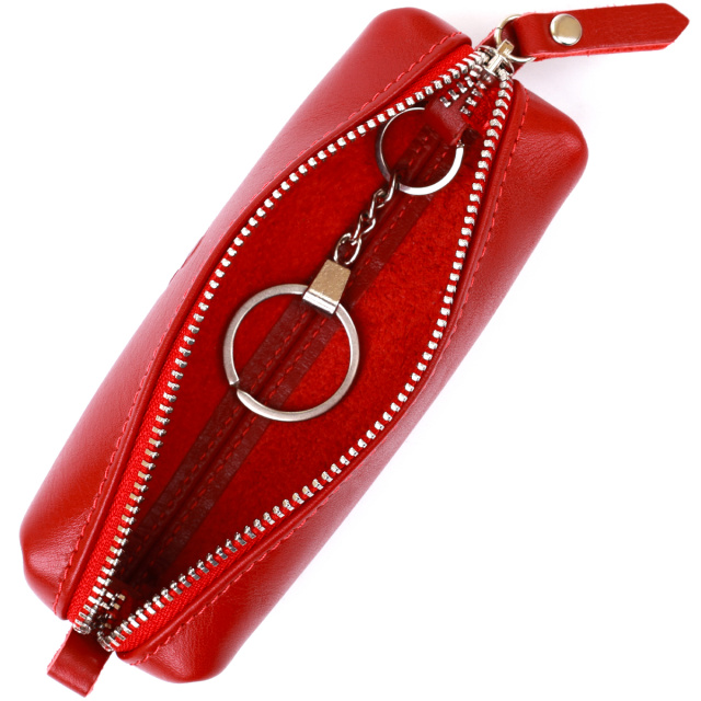 Материал: натуральная кожа. Цвет: красный. Размеры (ШхВхГ, см): 13х3х4 см. Страна производитель: Украина. Бренд: GRANDE PELLE. Описание: - закрывается на молнию; - внутри кольцо для ключей; Женская кожаная ключница в красивом насыщенном красном цвете. Имеет форму тубуса, что очень удобно. Ваши ключи теперь всегда будут надежно защищены и легкодоступны. Упакован аксессуар в фирменный чехол черного цвета. Такая вещь станет отличным подарком, ведь ключницы нужны всем без исключения.