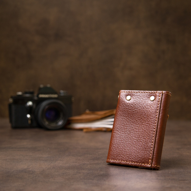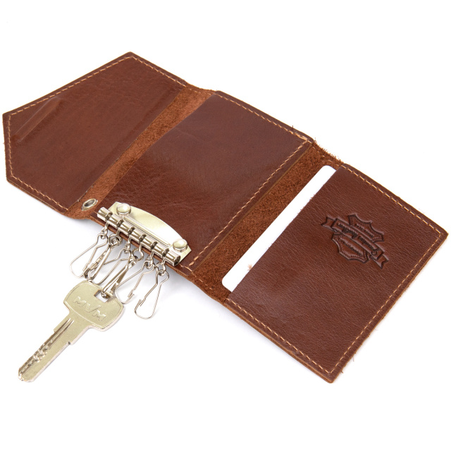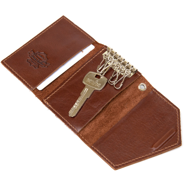 Красивая вместительная ключница из натуральной кожи в шикарном притягательном шоколадном цвете с серебреной фурнитурой. Выполнена очень качественно и добротно, что видно сразу невооружённым глазом. Ключи крепятся на надежные карабины. Закрывается изделие на скрытый магнит.