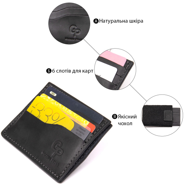 Стильный и практичный картхолдер из высококлассной натуральной кожи от известного украинского производителя. Цвет изделия – универсальный черный, что придает ему статуса унисекс. Легко поместится в сумке или в кармане. Аксессуар очень удобен в использовании. Также данный картхолдер станет хорошим презентом на любой праздник.