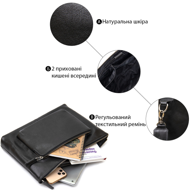 Материал: натуральная кожа. Цвет: черный. Размеры (ШхВхГ, см): 36х25х1,5 см. Страна производитель: Украина. Бренд: GRANDE PELLE. Описание: -