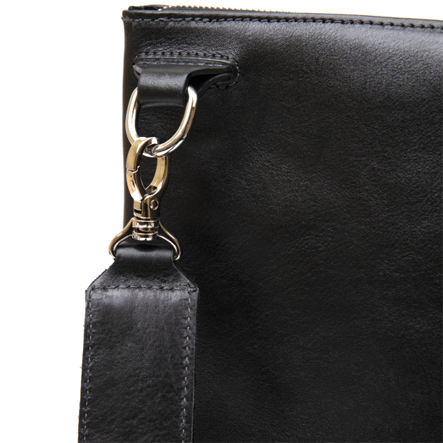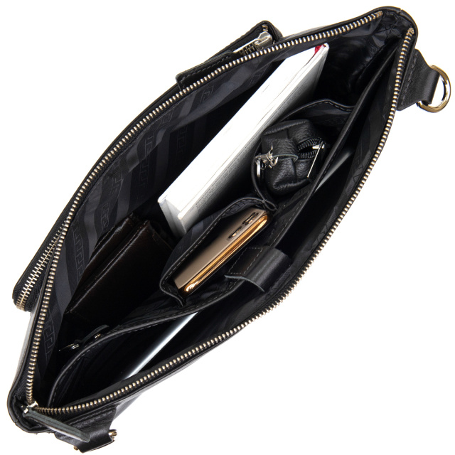 Отличная сумка для ноутбука из натуральной кожи высокого качества. Фактура – глянцевая гладкая. Фурнитура в серебреном цвета, сама сумка черная. Внутри весьма вместительное отделение, в которое поместятся бумаги формата А4, блокноты, ручки и прочая канцелярия. Отделение для ноутбука фиксируется хлястиком с липучкой. На внешней стороне также присутствует небольшой практичный карман на молнии, применение которому всегда найдется. Упакована сумка в фирменный чехол.
