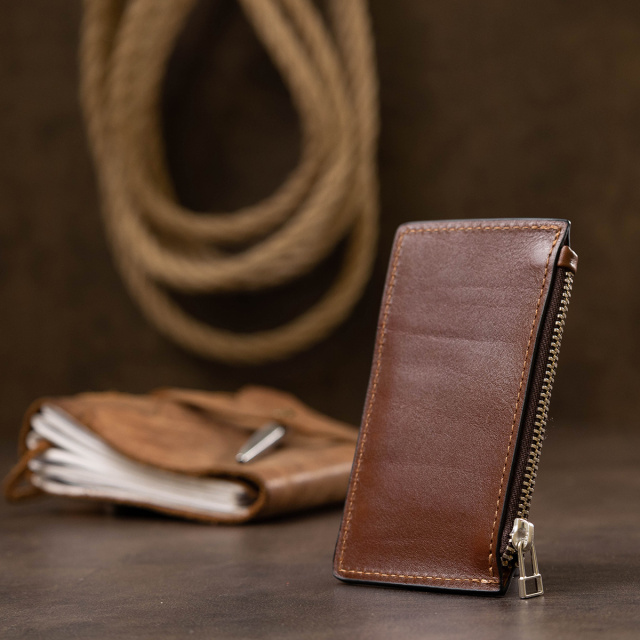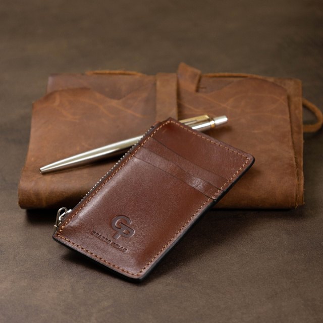 Практичный мужской картхолдер для небольшого количества карт, но которые всегда должны быть под рукой. Выполнен из натуральной износоустойчивой кожи. Цвет изделия – коричневый, что смотрится очень стильно. Упаковка представлена в виде уплотненного фирменного чехла.