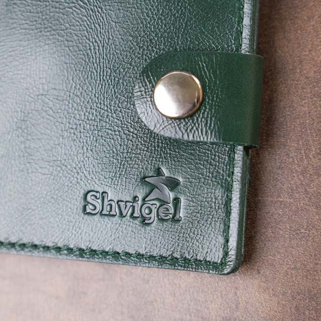 Современное портмоне в два сложения от украинского производителя. Выполнено изделие из натуральной кожи высокого класса и улучшенной прочности. Внутри есть вместительное основное отделение для купюр, слоты для визитных и кредитных карточек и компактная монетница на кнопке для мелочи. Цвет изделия – зеленый, фактура гладкая с легким отливом.