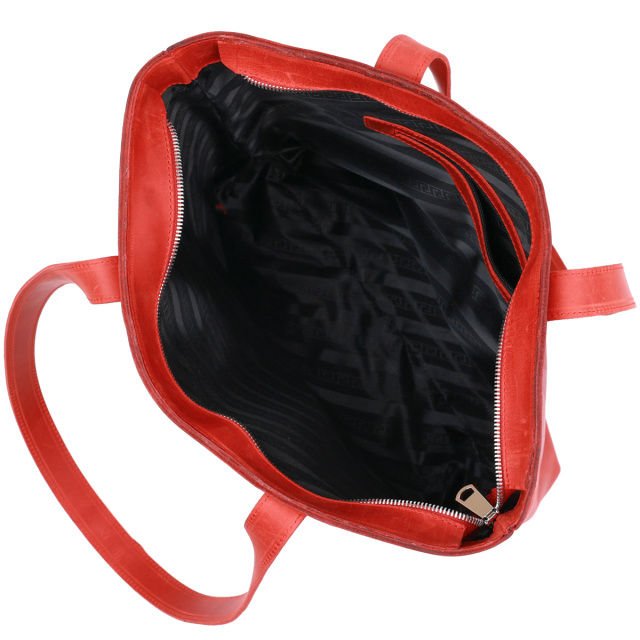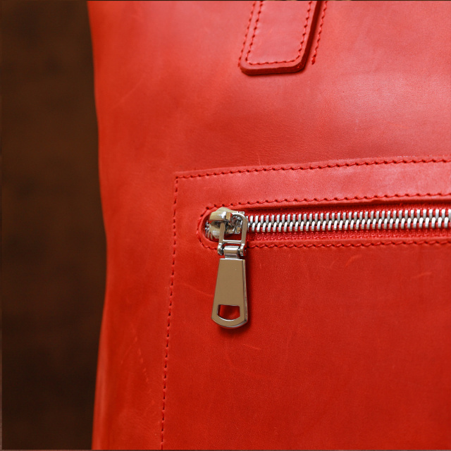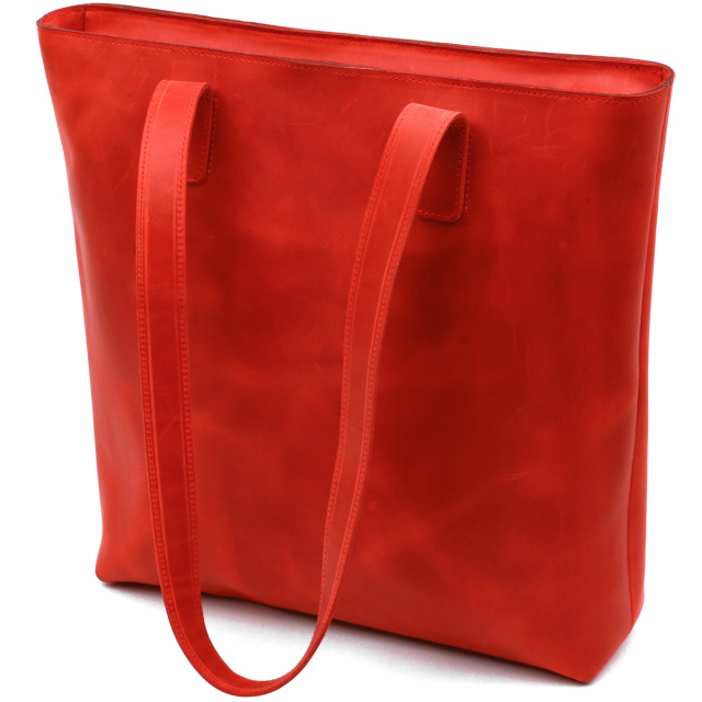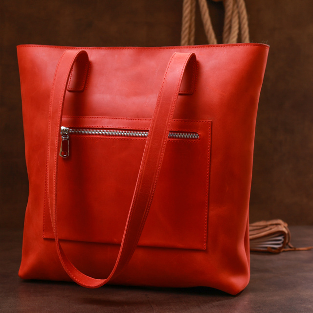 Превосходная женская сумка для шоппинга в модном и современном дизайне от украинского производителя. Имеет одно просторное отделение и два кармана на молнии внутри и снаружи. Материал изготовления – натуральная кожа высокого класса и с отличными характеристиками в эксплуатации. Цвет изделия – насыщенный красный, что смотрится очень женственно, фактура – матовая и винтажная.