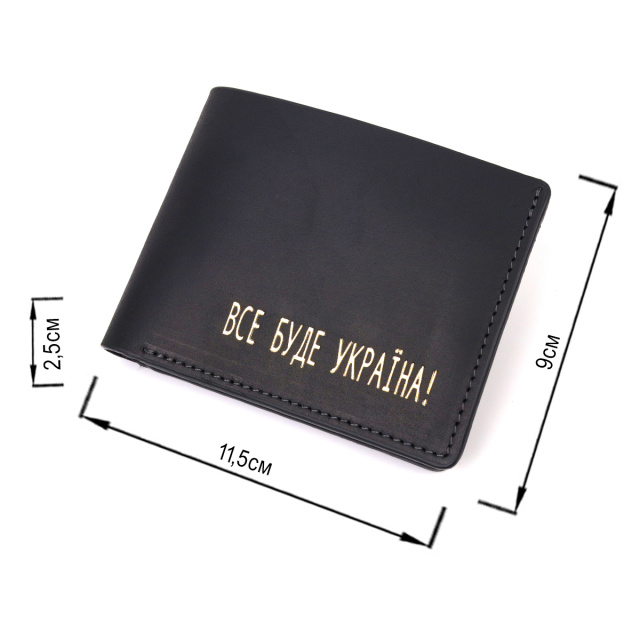 Практичный кожанный кошелек ,с патриотической надписью “Все буде Україна”. Изделие пошито из качественной гладкой кожи, с високими показателями износостойкости . Портмоне имеет два больших отделение для купюр всех номиналов, а также достаточное количество отделений для карт и монетницу. Кожаный кошелек станет отличным подарком на все праздники и не только.
