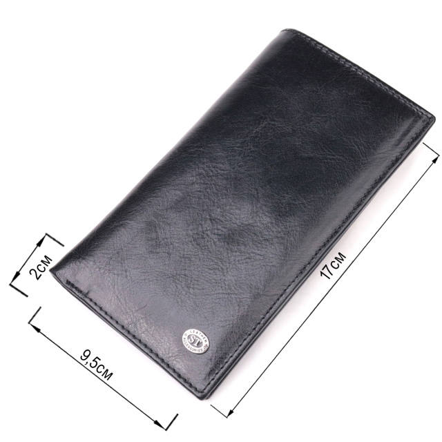 Шикарный вертикальный бумажник, из натуральной глянцевой кожи, в изисканом черном цвете. Аксессуар имеет огромную популярность, благодаря солидному и элегантному дизайну, а также прекрасной функциональности. В качестве материала используется прочная, износостойкая телячья кожа снаружи и свиная кожа внутри. Если вскоре приближается особый праздник, то перед Вами отличный подарок настоящему мужчине. Упакован аксессуар в картонную фирменную коробку.