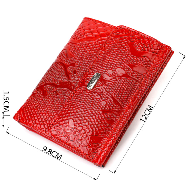 Яркий женский кошелек среднего размера из натуральной кожи с тиснением под рептилию. Аксессуар имеет одно основное отделение с тканевой перегородкой в которое помещаются купюры всех номиналов, пять карманов для карточек (один под сеточкой), два скрытых кармана и монетницу. Закрывается аксессуар в два сложения на кнопку. Приобретая кожаный аксессуар этой фирмы, себе или на подарок, будьте уверены, что он прослужит Вам не один год.
