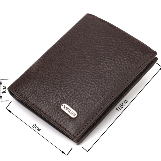 Стильный мужской бумажник из натуральной кожи. Аксессуар имеет основное отделение для купюр с перегородкой, пять карманов для карточек, четыре кармана под сеточкой и один скрытый карман. Кошелек складывается пополам, без застежки. На лицевой стороне в правом нижнем углу, расположен металлический логотип компании производителя. Многофункциональный мужской бумажник из очень прочной кожи отличный выбор подарка для солидного мужчины.
