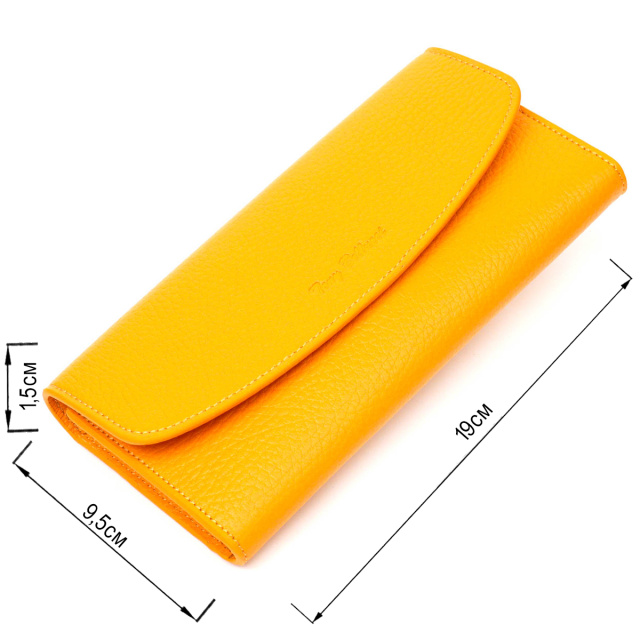 Модный женский кошелек из натуральной кожи флотар, для которой характерна прочность, износостойкость и зернистая фактура. Аксессуар состоит из одного широкого отделения для купюр, двенадцати ячеек для пластиковых карт, одного прилегающего кармана и монетницы на молнии. В изделии использована качественная фурнитура золотистого цвета. Закрывается кошелек клапаном на кнопку. Покупая этот кожаный кошелек, Вы не только приобретаете стильную вещь, но и получаете качественный аксессуар, который прослужит не один год.
