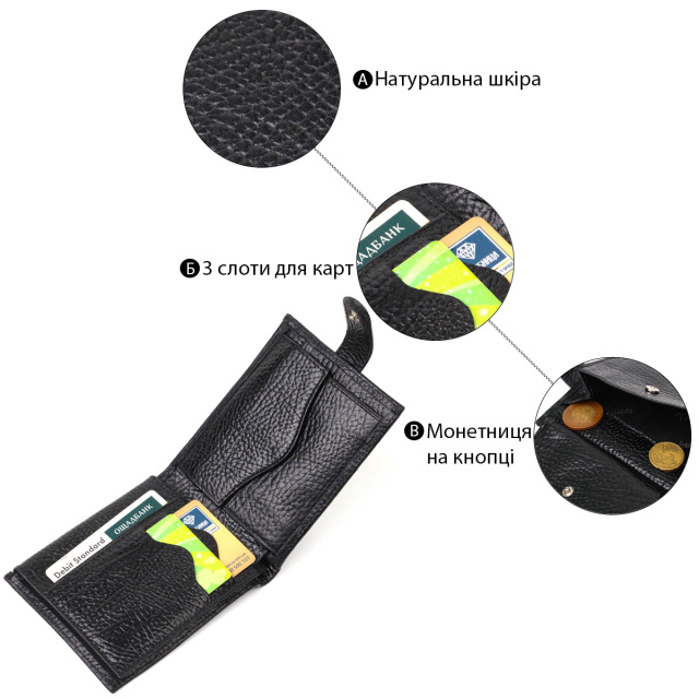 Стильный мужской кошелек горизонтального формата из натуральной кожи Tony Bellucci 22015 Черный