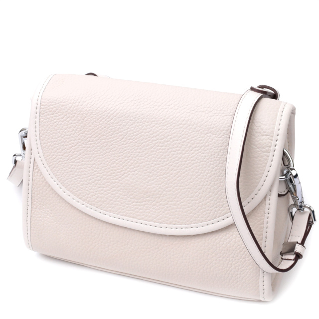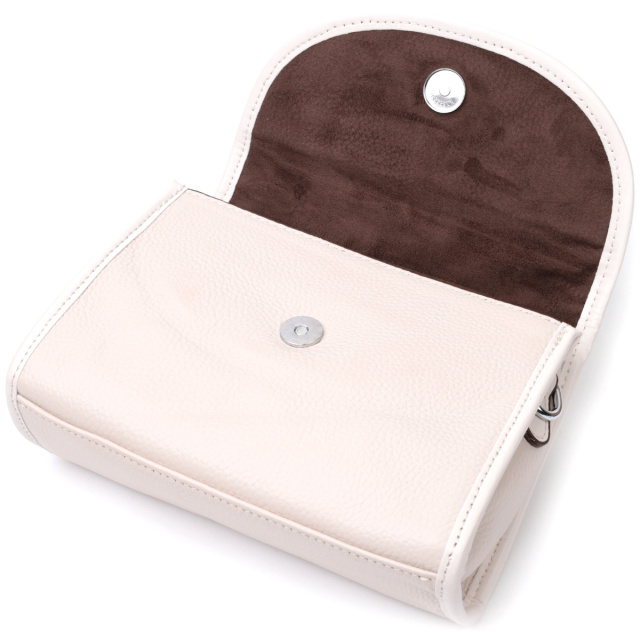 Нежная маленькая сумочка которая закрывается на молнию и стильный полукруглый клапан на магните. Изделие пошито из качественной натуральной мягкой кожи, которая долго носится и не теряет свой первоначальный вид. Аксессуар состоит из основного отделения и потайного кармана на молнии. Носить сумку можно под рукой, на плече и через плечо, для этого имеется кожаный съемный регулируемый ремень. В изделии использована качественная фурнитура серебряного цвета. Универсальный вариант сумки который подойдет для вечера, а также отлично подойдет на каждый день.