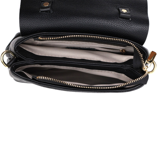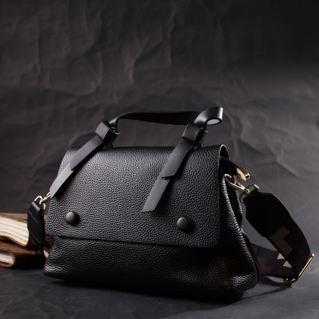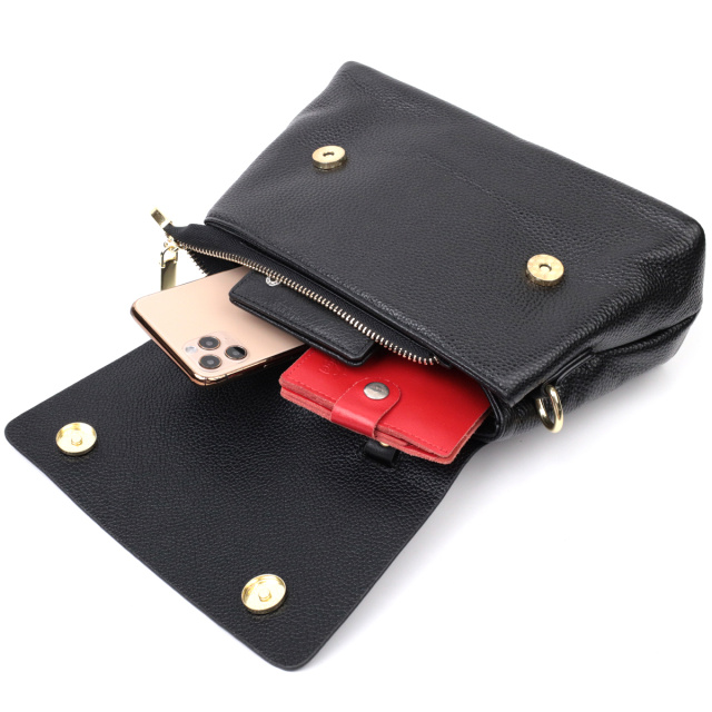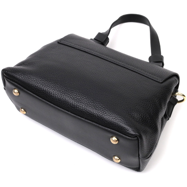 Лаконичная женская сумка в форме трапеции из натуральной кожи с высоким показателем качества и износостойкости. Аксессуар состоит из двух отделений, что закрываются на молнию и клапаном на магнит, внутри которых по карману на молнии и открытого типа. Носить сумку можно на плече, через плечо для этого имеется съемный регулируемый текстильный ремень, а также в руке за кожаную ручку. В изделии использована качественная фурнитура цвета желтого золота.
