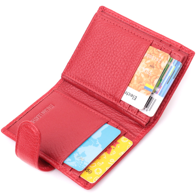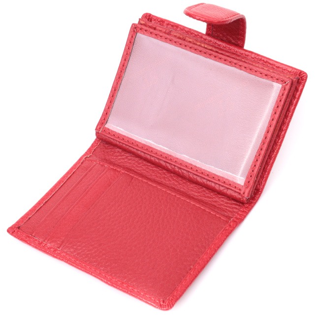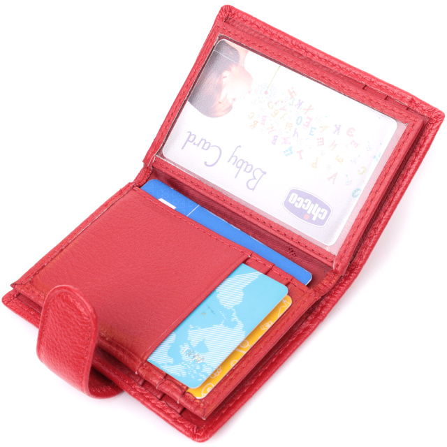 Качественная визитница для женщин в ярком красном цвете, что закрывается пополам хлястиком на кнопку. Аксессуар вместительный из натуральной кожи, он состоит из двенадцати ячеек для карт, кармана под пленкой и одного скрытого кармана. Визитница дополнена надежной фурнитурой и крепкой подкладкой.