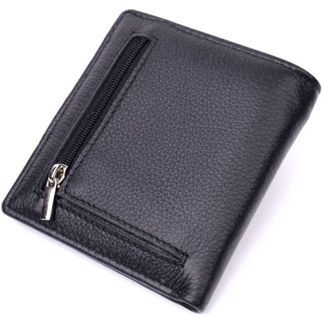 Аккуратный кошелек небольшого размера из натуральной кожи высочайшего качества. Аксессуар состоит из одного вместительного отделения для купюр, кармана на молнии через всю длину, шести ячеек для карт, двух скрытых карманов и наружного кармана на молнии, что отлично прослужит для монет. Портмоне дополнено надежной фурнитурой и крепкой подкладкой. Укомплектован кошелек в фирменную картонную коробку белого цвета. Изделие станет идеальным подарком на любой праздник.