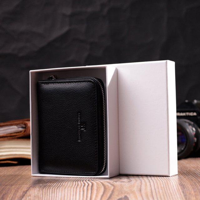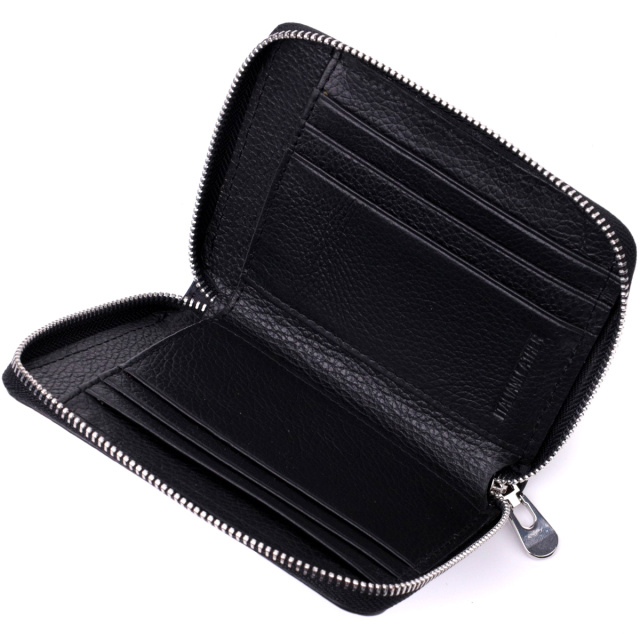 Кожаный кошелек для женщин на молнии с тисненым логотипом производителя ST Leather 19489 Черный