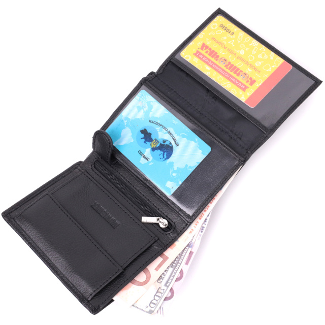 - 1 карман для монет, что закрывается клапаном на кнопку;