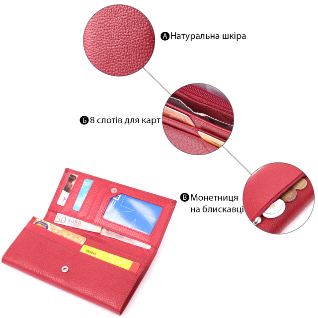 UA MarketКиївJANAВсе товарыТовари та послугиСумки мужскиеКошелькиЖенские кошелькиЯркий женский кошелек горизонтального формата из натуральной кожи ST Leather 22514 Красный