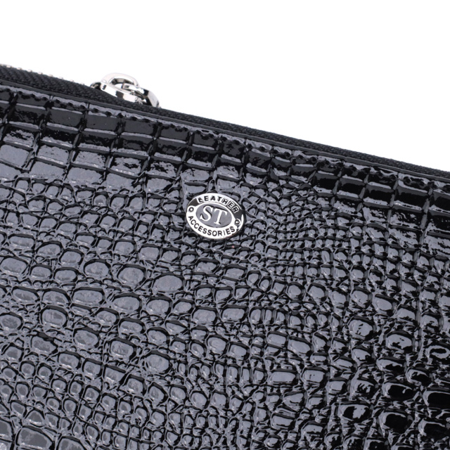 Стильный фактурный клатч на два отделения из лакированной натуральной кожи ST Leather 22693 Черный