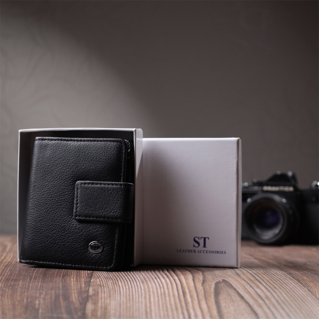 Женский кошелек с монетницей и блоком для пропусков из натуральной кожи ST Leather 22713 Черный