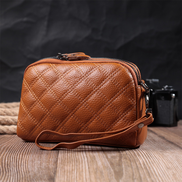 Небольшая сумка для женщин из натуральной кожи высокого качества. Изделие очень удобное, можно носить на плече, руках и на кисти, для этого имеется съемный кожаный ремешок и съемный кистевой ремень. На лицевой стороне сумка прошита ромбами, что придает особого шарму изделию. Модель дополнена фурнитурой цвета темного серебра. Аксессуар имеет два отделения, что закрываются на молнии, два кармашка - один на молнии и один открытого типа внутри и один карман на молнии на тыльной стороне. Если Вам нужен вариант повседневной сумки, которая отлично подойдет в качестве вечерней, то данная модель идеальный вариант.
