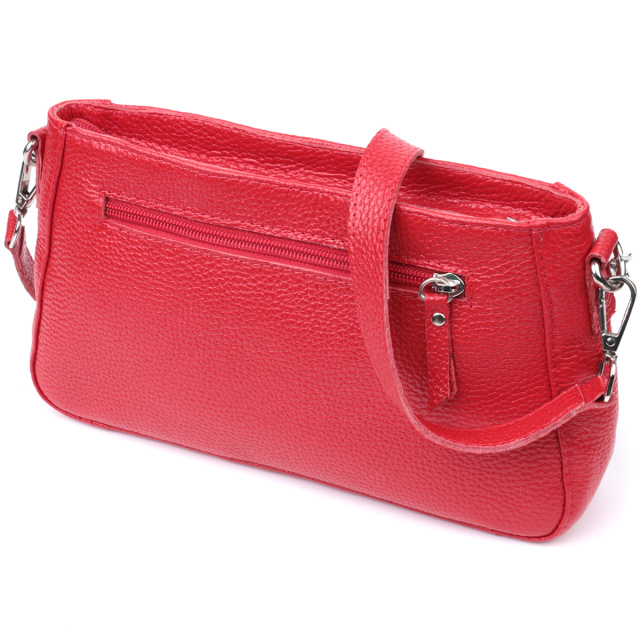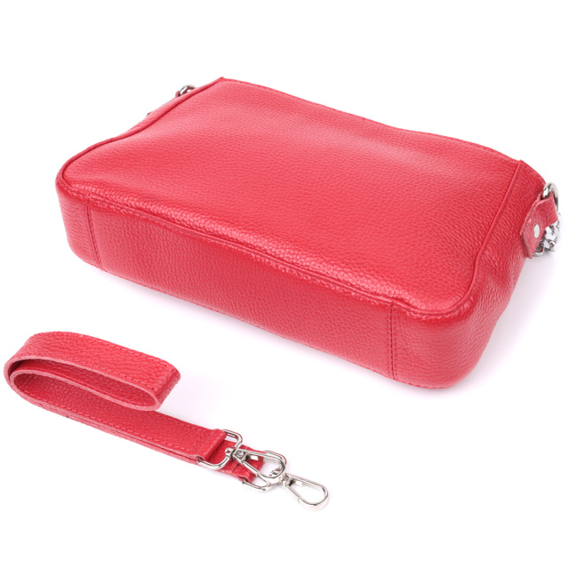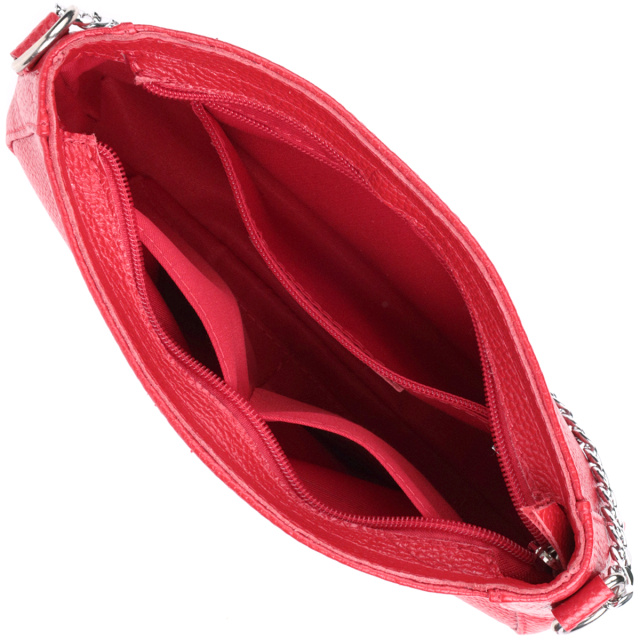 Яркая сумка багет с цепочкой и съемным ремешком из натуральной кожи Shvigel 22836 Красная