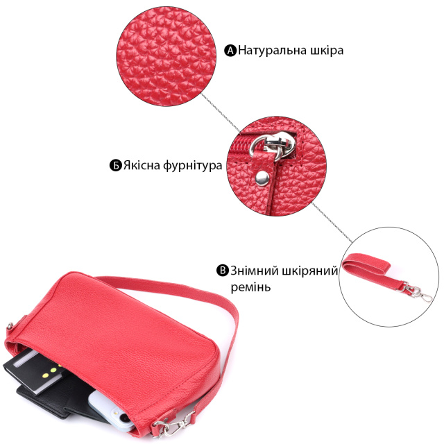 UA MarketКиївJANAВсе товарыТовари та послугиСумки женскиеКожаные женские сумкиЯркая сумка багет с цепочкой и съемным ремешком из натуральной кожи Shvigel 22836 Красная