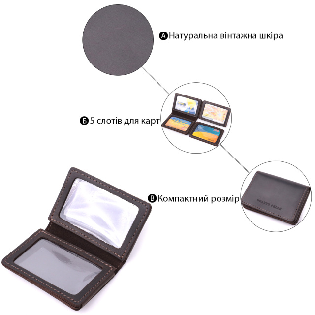 Удобная обложка для автодокументов для мужчин, в красивом темно-коричневом цвете, которая прошита светлой нитью по краям, что придает изделию лаконичности и стиля. Аксессуар изготовлен из высококачественной натуральной кожи Crazy Horse, которая известна всем своей прочностью и эксклюзивностью. Состоит изделие из пяти карманов, четыре из которых под пленкой и одного накладного кармана, снаружи на тыльной стороне. Такая обложка просто необходимый аксессуар для Вашего максимального комфорта в повседневной жизни.