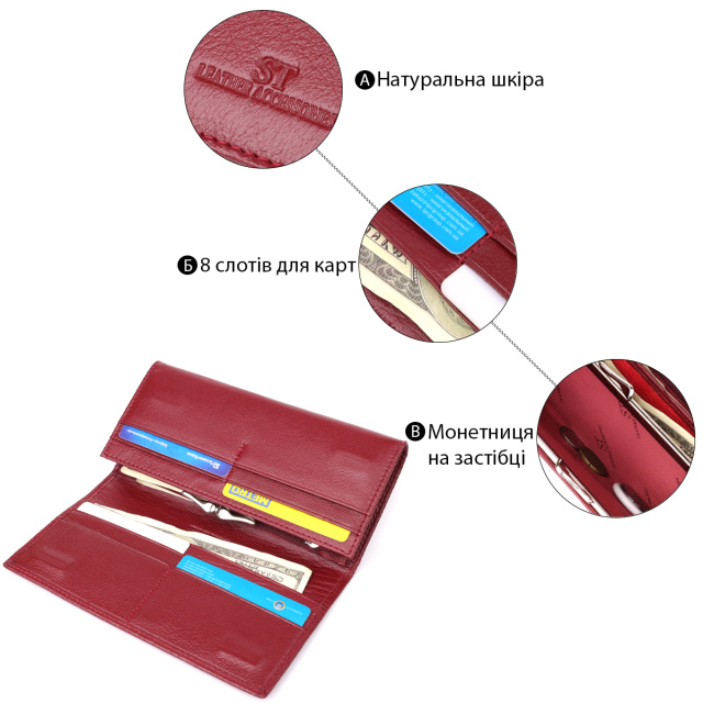 Классическое женское портмоне в два сложения из натуральной кожи высочайшего качества. Кожаное портмоне очень практичное и служит достаточно долго. Аксессуар состоит из трех вместительных карманов для купюр, кармана на молнии через всю длину, восьми ячеек для пластиковых карт, скрытого кармана и кармана на механической защелке, что отлично прослужит для монет. Портмоне дополнено надежной фурнитурой. Укомплектован кошелек в фирменную картонную коробку белого цвета.