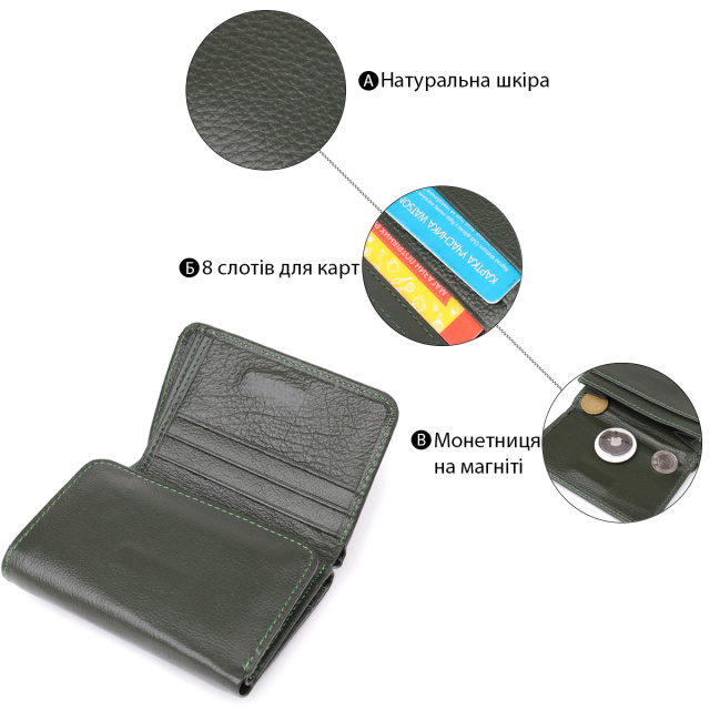 Практичное женское портмоне в три сложения из натуральной кожи премиум-класса. Элегантный аксессуар для женщин с безупречным вкусом и тонким чувством стиля. Выполнен из высококачественной натуральной кожи с отличными эксплуатационными характеристиками. Модель представлена в выразительном, насыщенном цвете, который подчёркивает индивидуальность и привлекает внимание. Внутри — два просторных отделения для купюр, кармашки для пластиковых карт и вместительная монетница на магнитной застёжке. На лицевой стороне по центру — тиснёный логотип производителя, являющийся знаком качества и оригинальности изделия. Это портмоне станет отличным выбором как для себя, так и в качестве стильного и практичного подарка. Поставляется в плотной фирменной коробке с логотипом — готовое решение для презента.