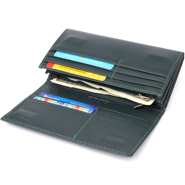 Оригинальный женский кошелёк для тех, кто ценит качество, функциональность и стиль. Аксессуар изготовлен из добротной натуральной кожи и продуман до мелочей для максимально комфортного использования. Внутри — три отделения для купюр, два кармана на молнии, прозрачный карман, восемь ячеек для пластиковых карт и два скрытых отделения. Снаружи — удобный карман для монет. На лицевой стороне в нижнем углу — аккуратный металлический логотип бренда, подтверждающий оригинальность и высокое качество изделия. Кошелёк дополнен прочной подкладкой и надёжной фурнитурой. Поставляется в фирменной белой коробке — отличное решение как для себя, так и в подарок.