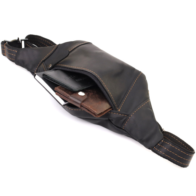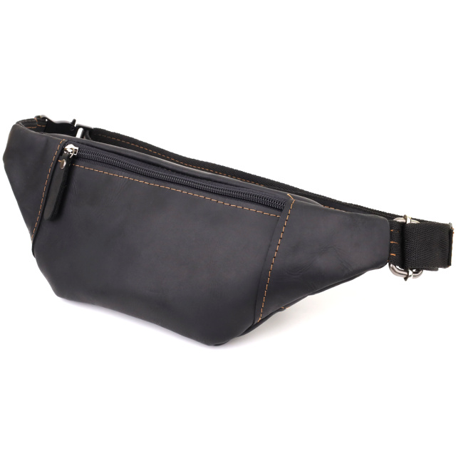 Стильная сумка-бананка для мужчин из натуральной винтажной кожи Shvigel 23120 Черный