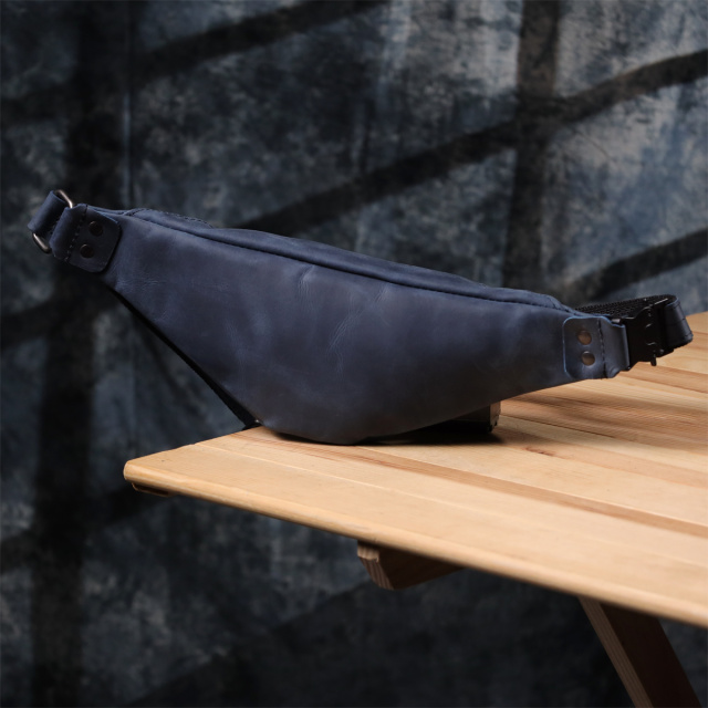 Сумка-бананка Shvigel из натуральной винтажной кожи в стильном синем цвете. Эта мужская бананка от украинского бренда Shvigel — идеальное сочетание утончённого дизайна, продуманной функциональности и узнаваемого стиля. Модель выполнена из натуральной кожи с винтажной фактурой и представлена в глубоком синем цвете, который придаёт аксессуару свежий, благородный и современный вид.