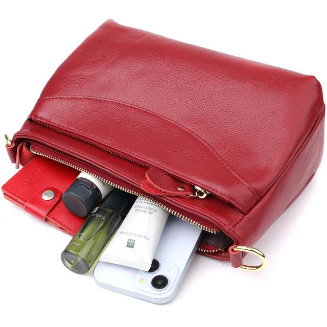 Эта красная кожаная сумка — отличный выбор для женщин, которые ценят сочетание стильного дизайна, удобства и высокого качества.