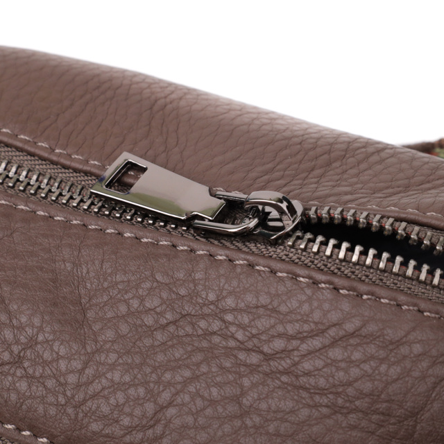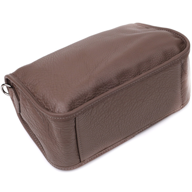 Фурнитура цвета серебра красиво контрастирует с тёплым тоном коричневой кожи, добавляя аксессуару сдержанного блеска. В комплект входят два съёмных ремешка — кожаный и текстильный, что позволяет менять стиль и способ ношения сумки в зависимости от настроения и случая.