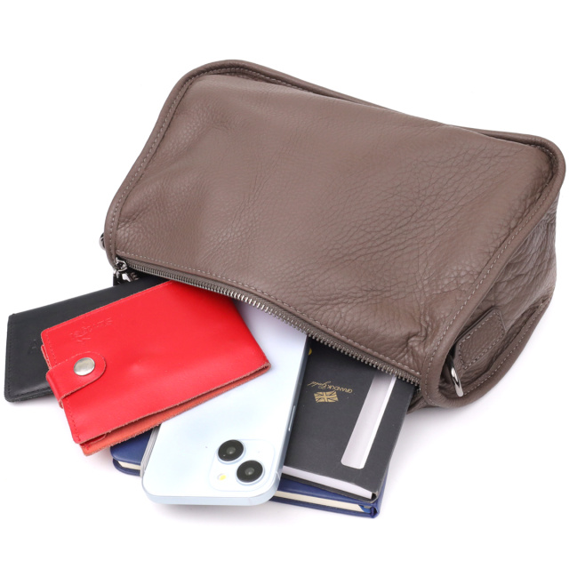 Модель имеет одно основное отделение, которое закрывается на молнию. Внутри — два удобных кармана: потайной на молнии для ценных мелочей и открытый для предметов, к которым нужен быстрый доступ.