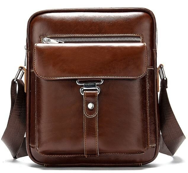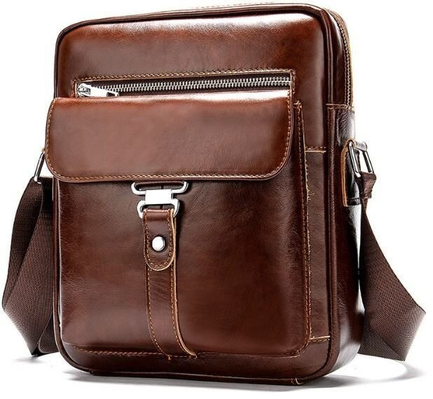 Компактная сумка для мужчин, которые ценят качество и не любят огромных сумок. Сумка оптимального размера на каждый день. Поместится кошелек, сигареты, документы, перекуск и маленькая бутылка с водой. Изготовлена из натуральной кожи. Производство – фабричный Китай высокого качества. Сумка упакована в тканевый мешок, что очень удобно для ее хранения. Фурнитура в сумке сребристого цвета. Прошита крепкими рыжими нитками. Наш магазин контролирует качество изделий, поэтому можно смело брать. Сумка будет хорошим и желанным подарком для любого мужчины.