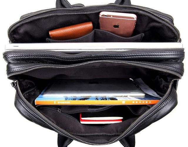 - надежные кожаные ручки (прячутся в карман на молнии);