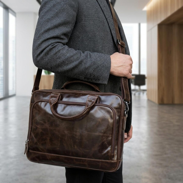 Благодаря продуманной конструкции сумка хорошо подходит для ноутбука, планшета, документов и рабочих вещей. Это удачный выбор для тех, кто ищет стильную, вместительную и функциональную кожаную сумку на каждый день.