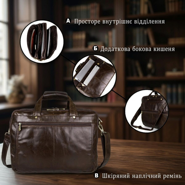 Благодаря продуманному формату сумка хорошо подходит для работы, делового стиля, учебы, ежедневного городского использования и поездок. Это удачный выбор для тех, кто ищет вместительную, стильную и функциональную кожаную сумку для ноутбука и документов.