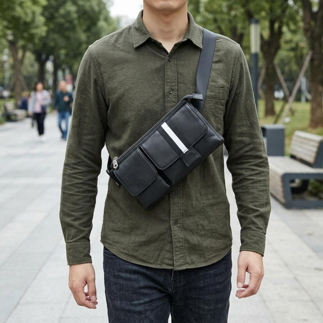 Кожаная поясная сумка — практичный аксессуар для города, поездок и повседневных дел. Модель сочетает в себе компактный формат, удобную организацию пространства и современный внешний вид, поэтому отлично подходит для мужчин, которым важно держать самые необходимые вещи всегда под рукой.