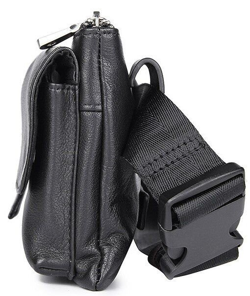 Изделие выполнено из натуральной кожи черного цвета. Материал приятный на ощупь, хорошо подходит для активного ежедневного использования и гармонично сочетается с городским, повседневным и дорожным стилем. Благодаря компактному размеру сумка остается удобной в течение всего дня и не перегружает образ.