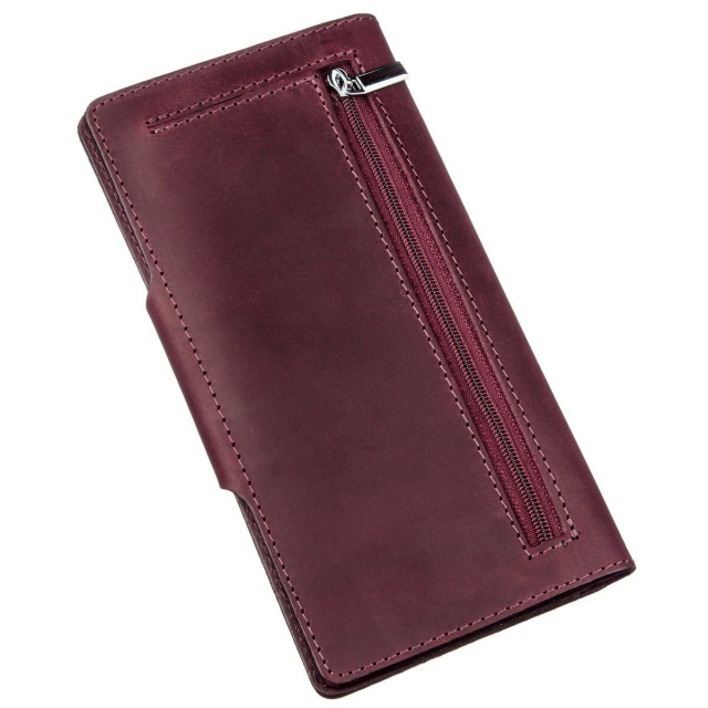 Кошелек из натуральной винтажной кожи оригинального бордового цвета. Застегивается на хлястик с кнопками. Модель имеет матовое покрытие. Достаточно оригинально смотрится. Богатый внешний вид. Сверху прошита ровной строчкой в дизайн изделия. Имеет строгий выдержанный дизайн в классическом стиле. Идеально подойдет для тех, кто любит яркость и оригинальность. Не занимает много места в вашей сумочке. Тонкий и одновременно вместительный. Будет отличным подарком. Кошелек имеет высокую износостойкость к потертостям и трещинам. Модель доступна в разных цветах и типах кожи. Мы уверены, что бумажник удивит своего владельца.