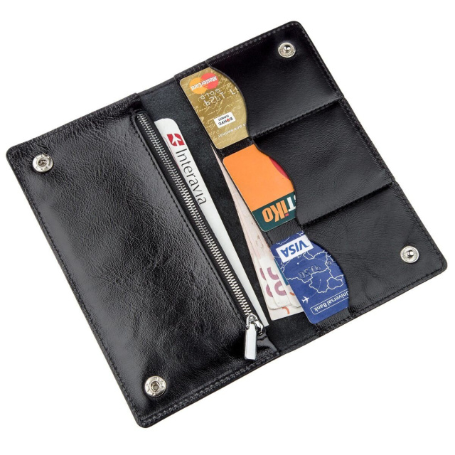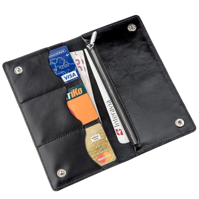 Мужской бумажник из натуральной кожи с красивым блеском. Удобно лежит в руке и имеет простой и функциональный дизайн. Кармашек на молнии при желании вы можете использовать для мелочи. С таким аксессуаром ваши средства всегда будут в безопасности. Аксессуар мягкий и приятный на ощупь с естественным запахом натуральной кожи. Купюры в бумажник помещаются в развернутом виде. Закрывается кошелек на две кнопки внутри аксессуара. Изделие легко поместится в сумку и однозначно порадует своего обладателя.