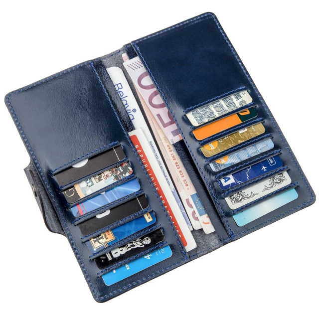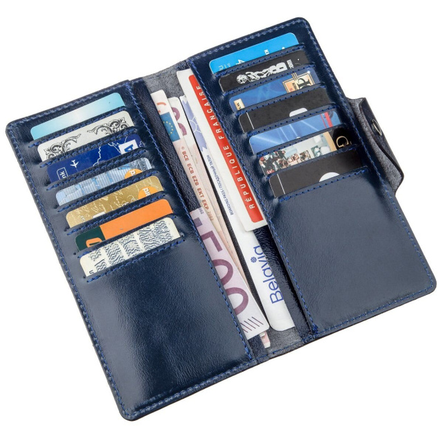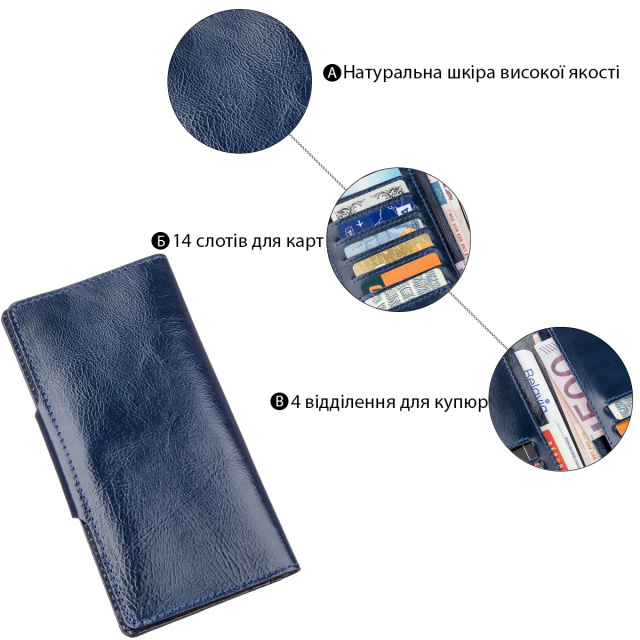 Цвет: синий; Материал: натуральная кожа высокого качества; Размеры (ШхВ, см): 18х8,5х1; Страна производитель: Украина. Внутри: - 4 отделения...