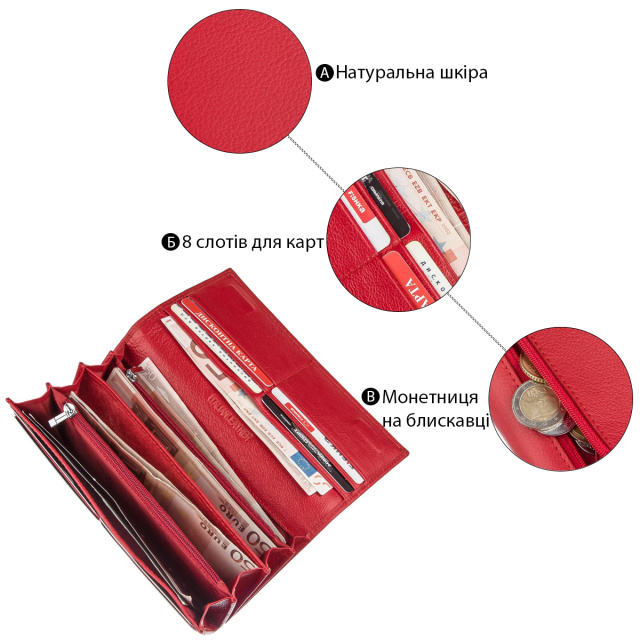 Материал: натуральная кожа;  Размеры (ШхВ, см): 18,5х9,5х2; Цвет: красный; Страна производитель: Китай; Страна происхождения ТМ:...